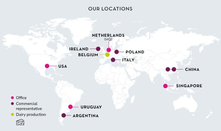 With offices in the Netherlands, Singapore, Uruguay and USA, our team is strategically positioned to identify and deliver the right dairy solutions for our customers, wherever they are in the world.